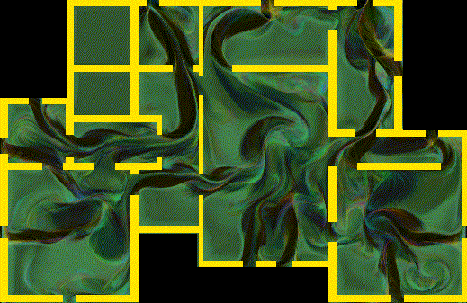 現代の住宅は耐震構造を高める為、中基礎を迷路のように設ける傾向があります。そのような基礎等に排気ファンだけでは補えない淀む所の確認や補助ファン(撹拌や拡散送風機)を追加した場合の効果が確認できます。