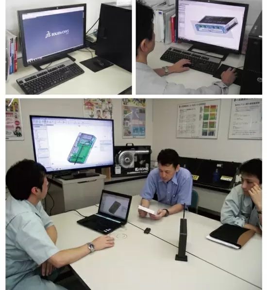 (①1次試作設計、②試作製作及び設計検証、③量産設計、④量産試作及び量産設計検証)時に3次元CADシステムを活用し、複雑・高度な製品設計開発/検証(シミュレーション)を迅速に行います。